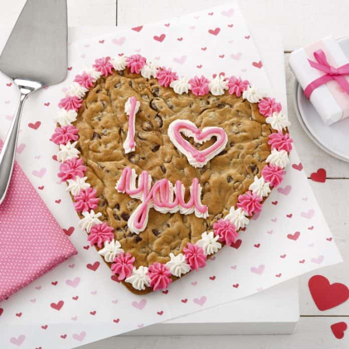 Nothing says “I love you” like a giant cookie cake that says in big letters, “I Love You.” Mrs. Field’s, known around the world as a household name in cookies and sweet treats, wants to help you celebrate this Valentine’s Day with something everyone can appreciate- a huge cookie, personalized with a heartfelt saying. If you’re looking for something to make him smile and feel loved, get a Mrs. Field’s Heart Shaped Cookie Cake this Valentine’s Day.